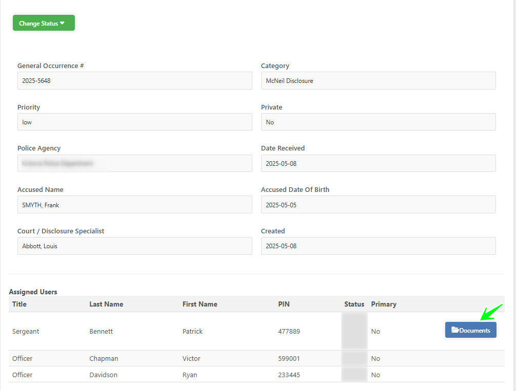 - See all Officers associated to this Police/McNeil file. The Officer under review is identified with a green icon